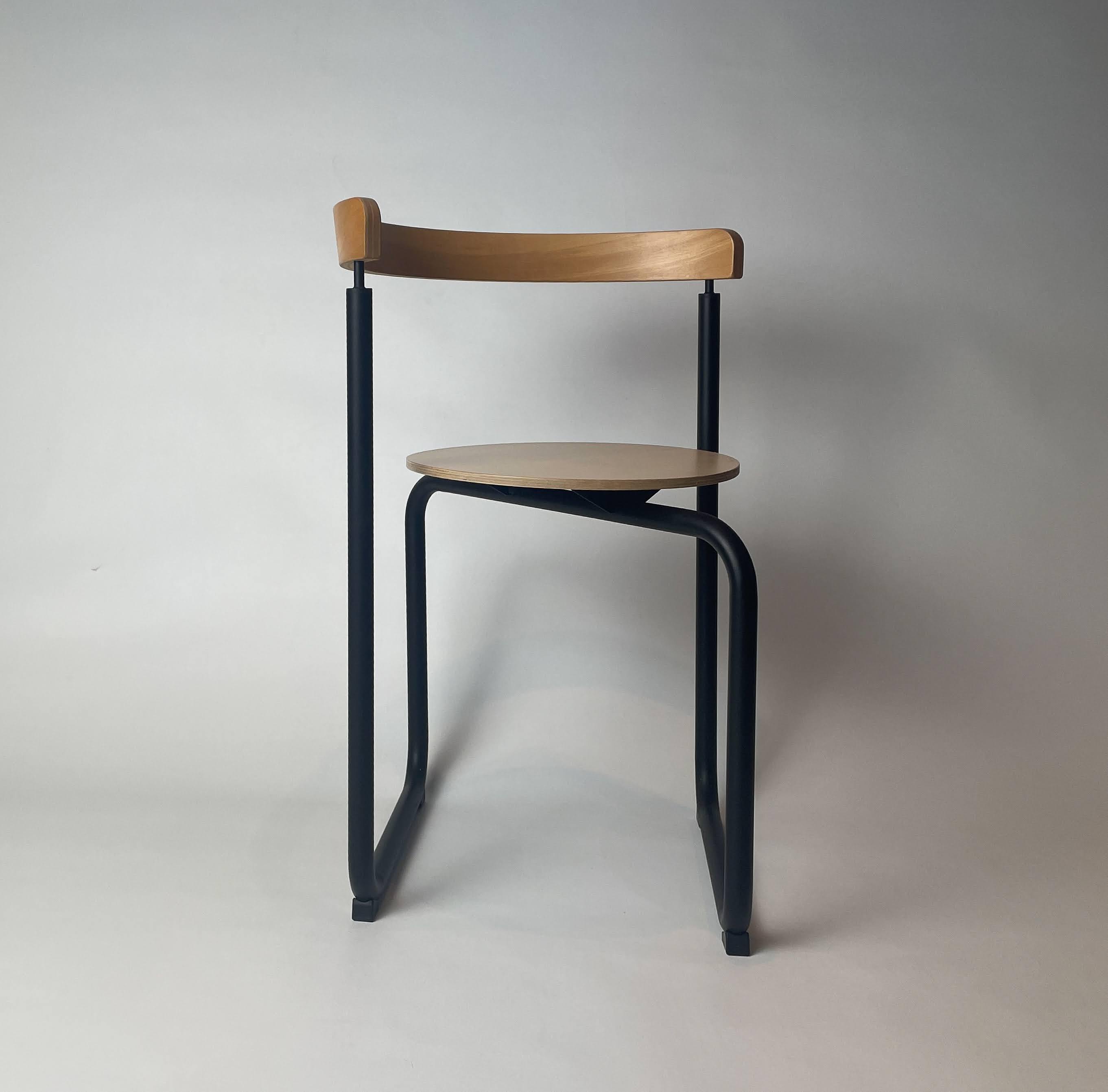 製造元であるパウスチャン(Paustian)社は、1992年、コペンハーゲンに新しいサッカースタジアム、パーケン(Parken)が出来た際の家具の選定に携わっており、エリック・マグヌセンにカフェテラスや複合施設での会議用椅子のデザインをするように依頼しました。椅子の価格を抑える必要があったことと、彼らしいデザインへの期待があったことから、ステンレス製の脚部分にマグヌセンの遊び心がつまったデザインとなりました。継ぎ目のない1本のステンレスでデザインされた脚はエレガントでスタイリッシュです。