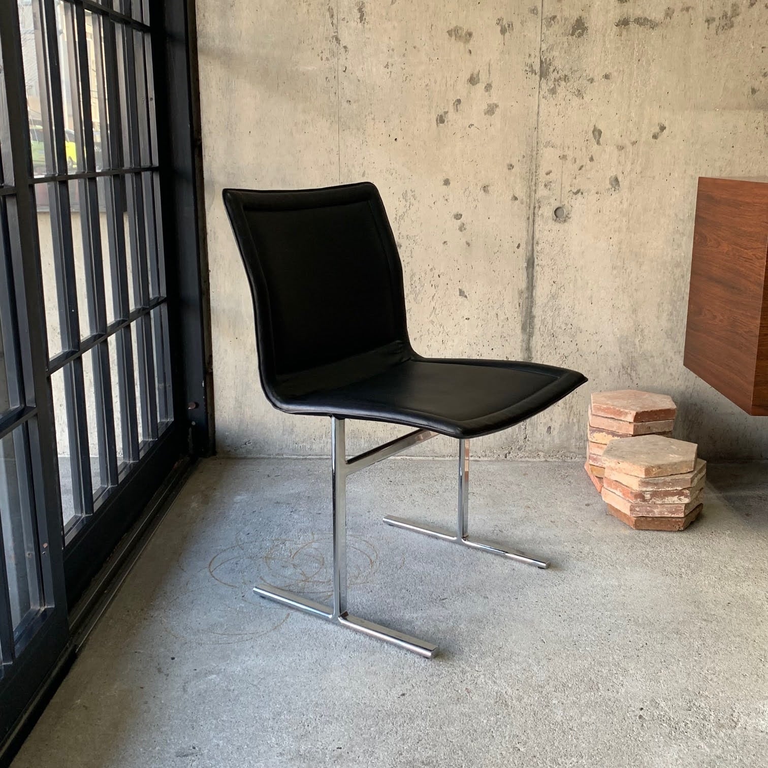 その美しい曲線とシンプルで力強いフォルムは、どんな空間にも調和し、時を超えて愛され続けています。座面には環境に配慮したバークタンレザー(植物性タンニンなめし)のレザーが用いられ、脚部はクロム仕上げのスチールで仕上げられているため、耐久性と上質な質感を兼ね備えています。
