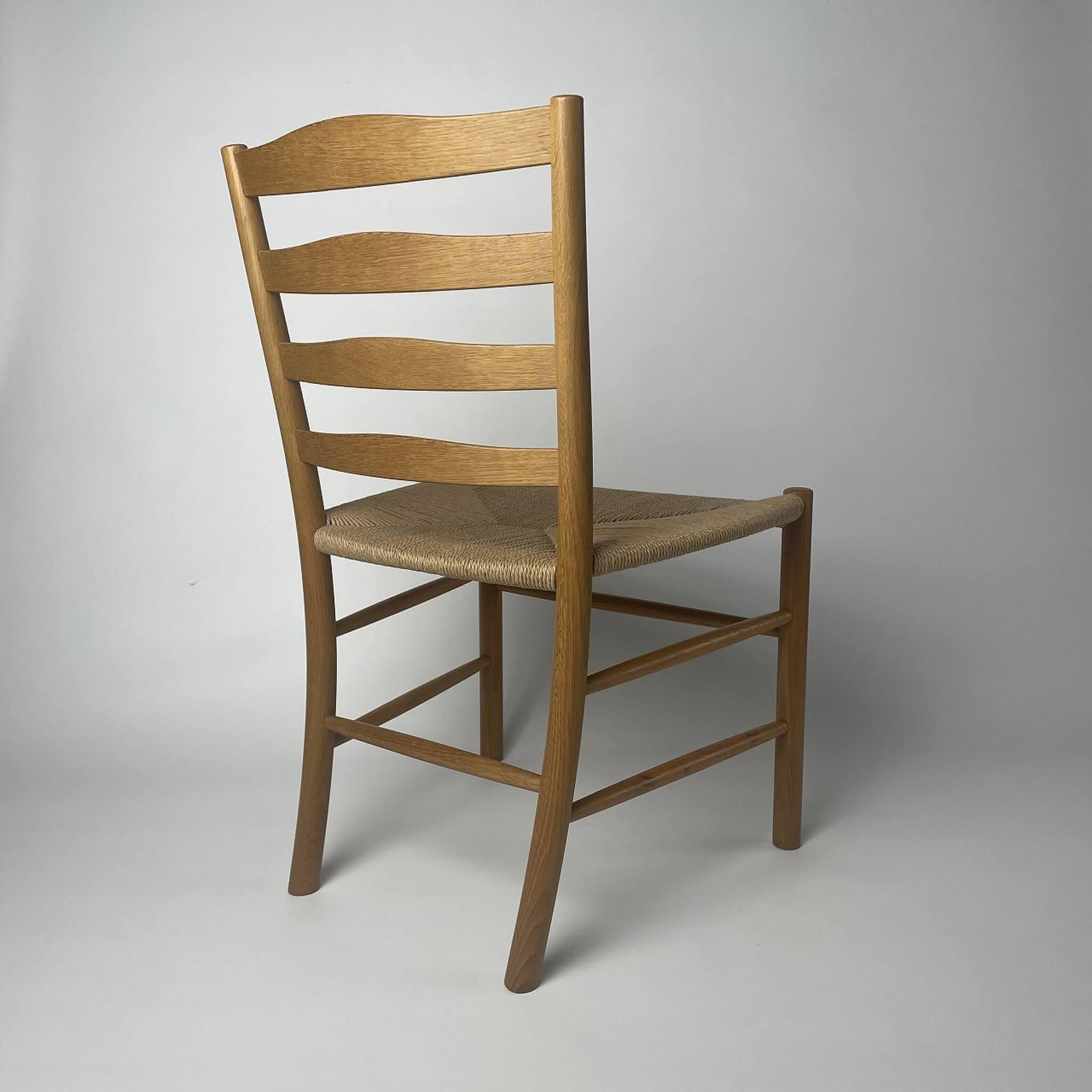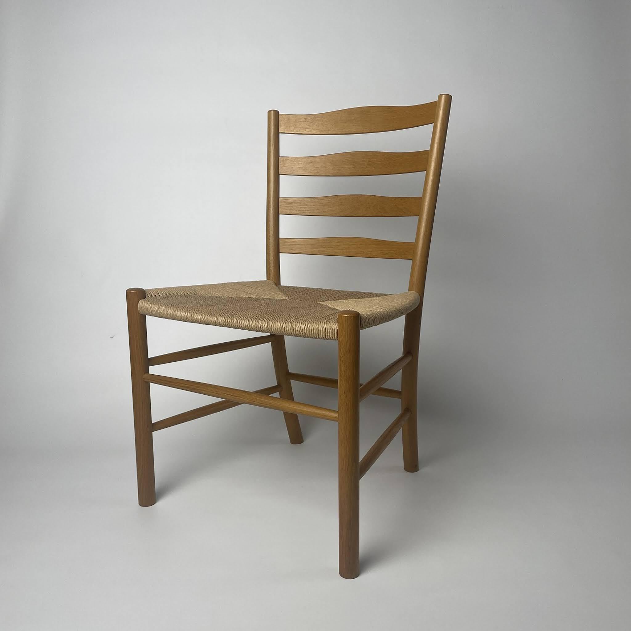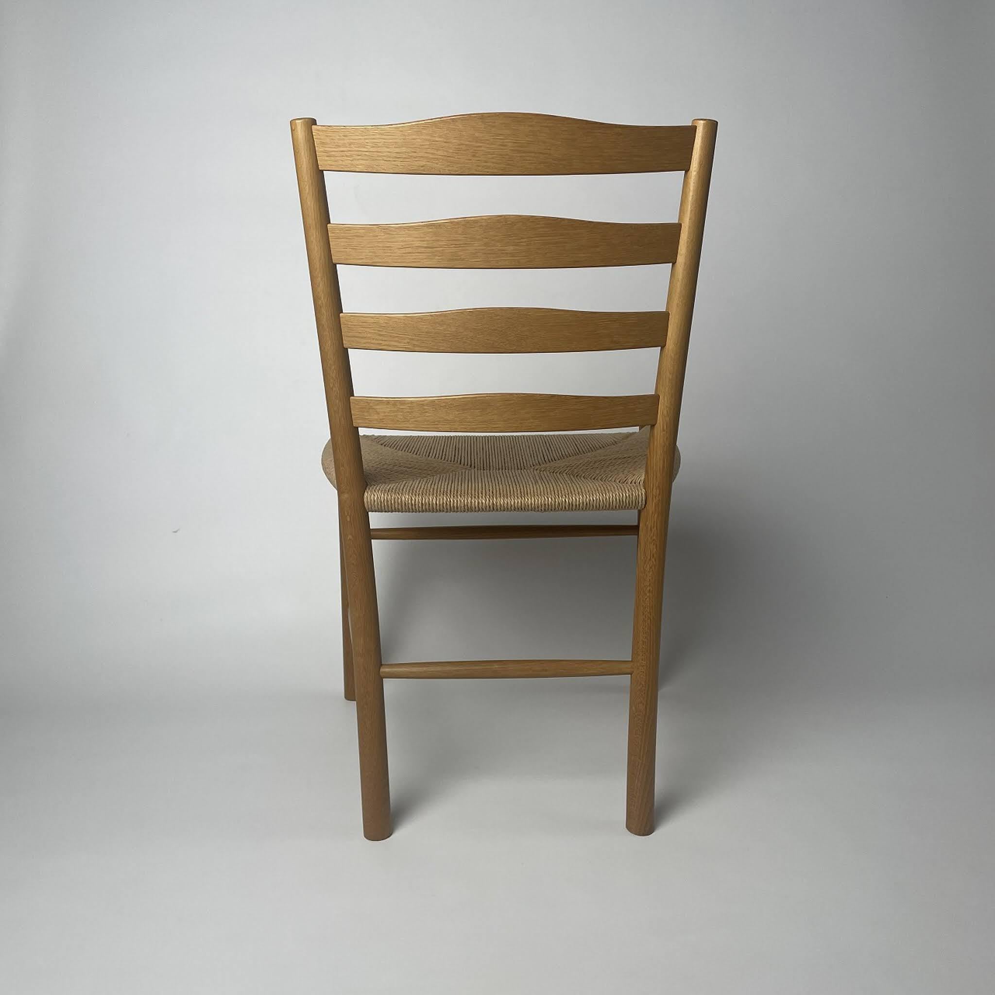 1936年にデンマークの建築家コーア・クリント (Kaare Klint) がコペンハーゲンのベツレヘム教会(Bethlehem Church)用にデザインした椅子です。シンプルで直線的なフォルムと温かみのある質感は、教会の静謐な空間に調和するために設計されたものです。軽やかでありながら堅牢な構造は、長く使い込むほどに木肌の深みが増します。北欧デザインの誠実さと普遍性を体現する、時代を超えて愛される名作椅子と言えるでしょう。