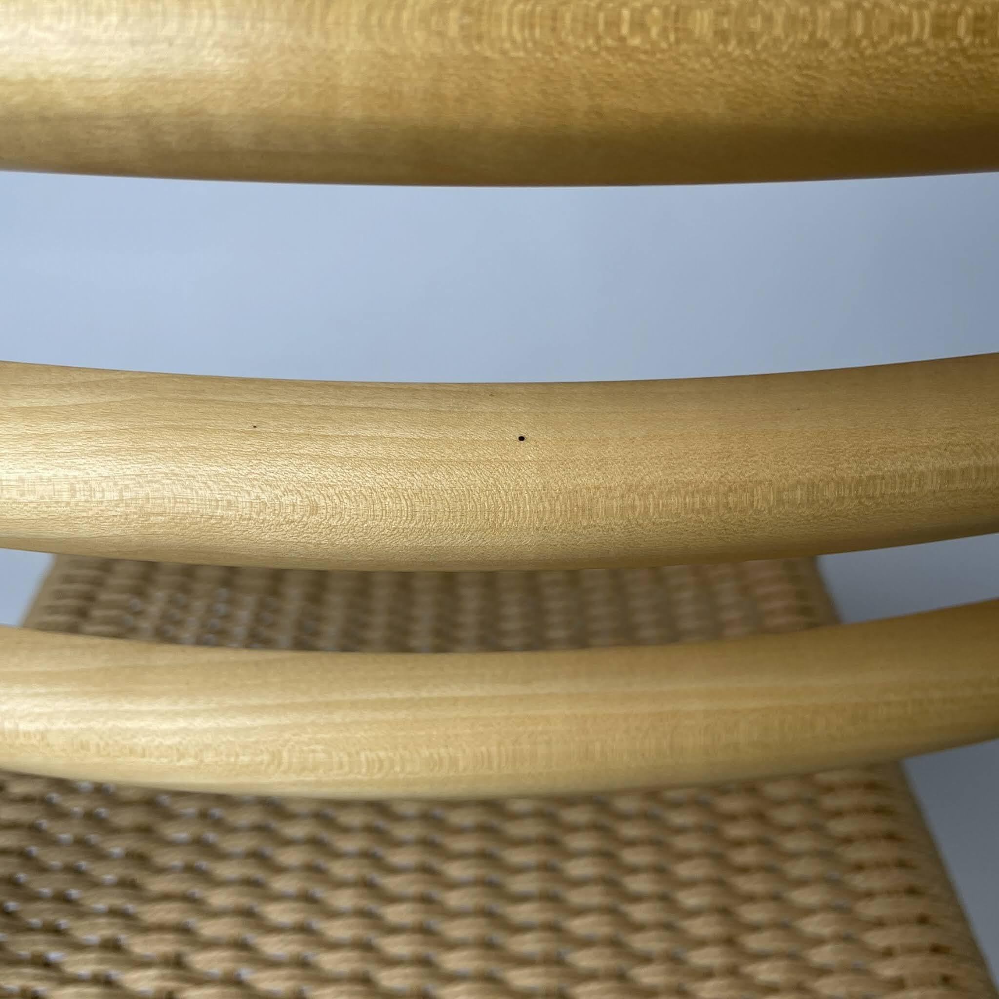 職人が丹念に削り出した曲線は、背中に自然に寄り添い、座面のペーパーコードはしなやかに体を支えます。