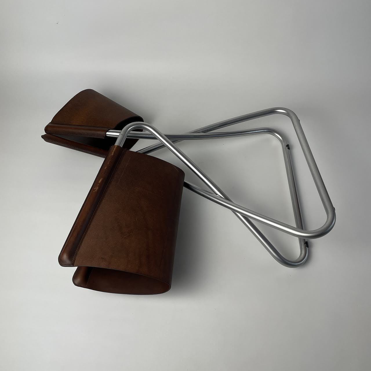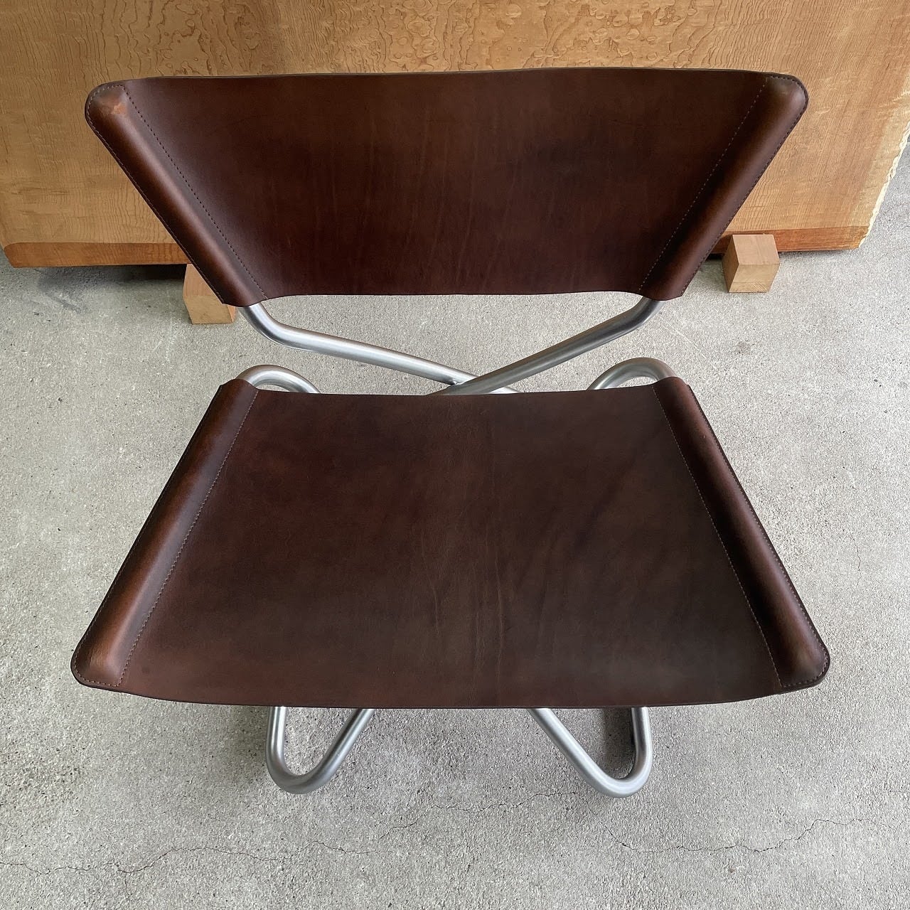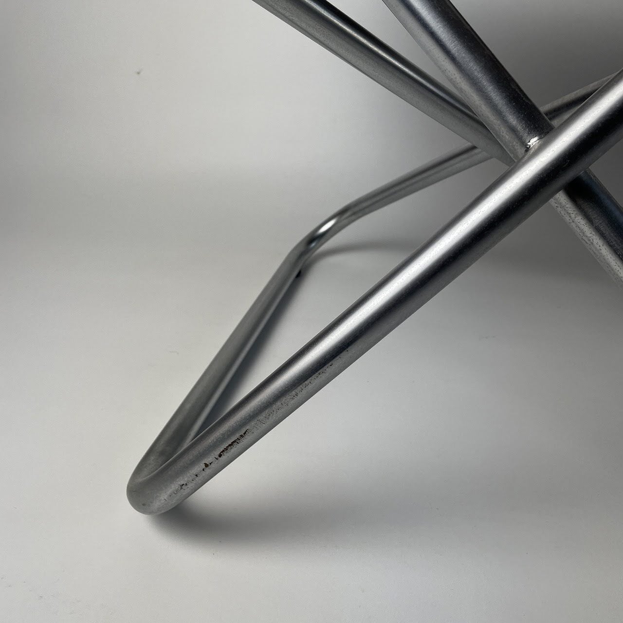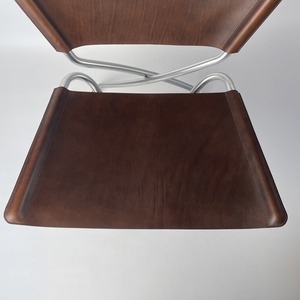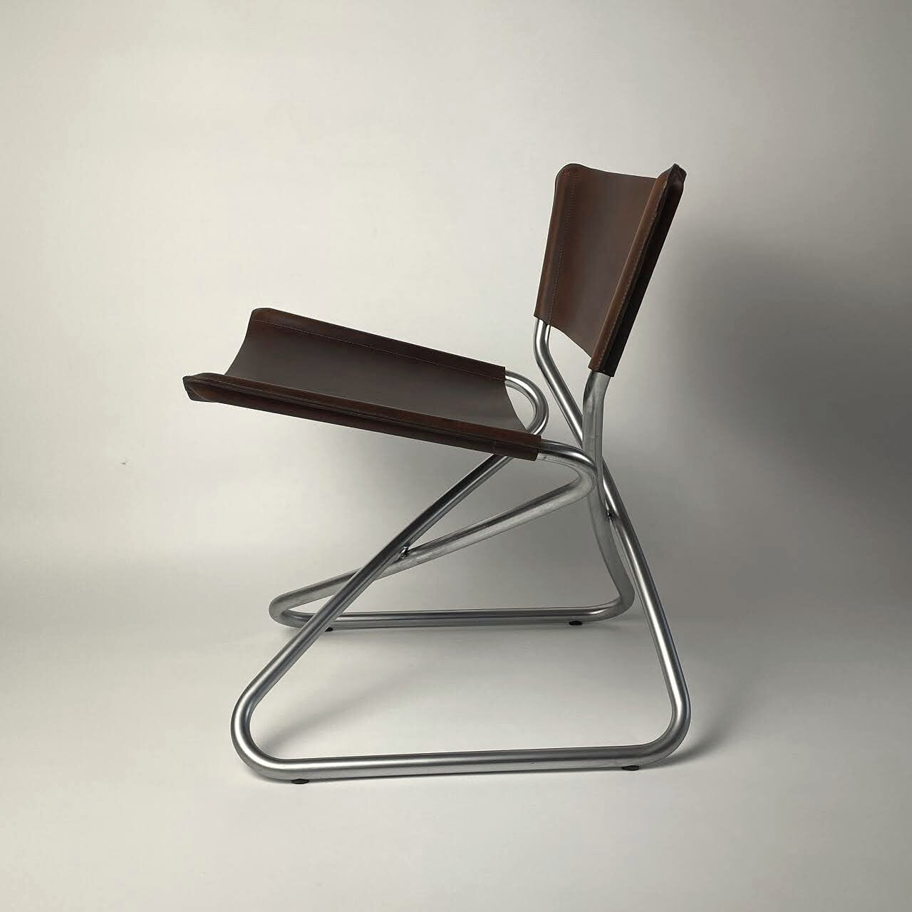 彼が描いたシャープな Z 字フォルムは、折りたたみ椅子とは思えない端正な存在感を放ちます。