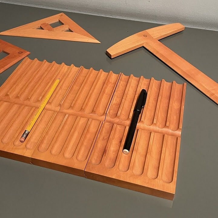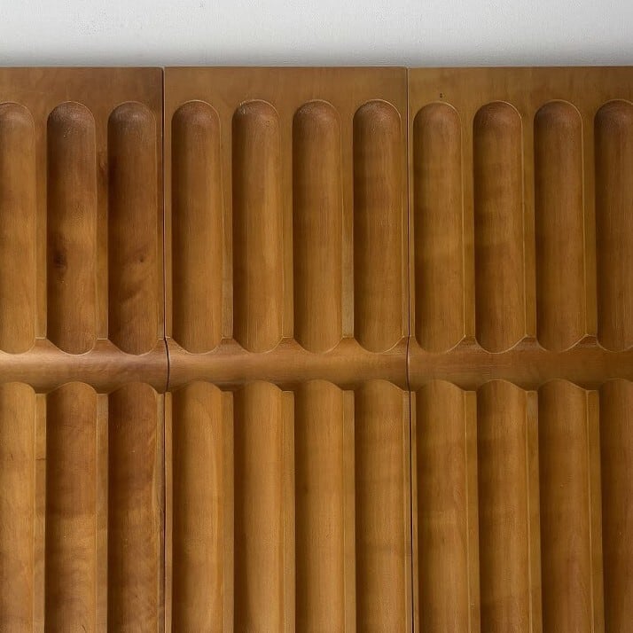 無垢材を贅沢に削り出し、柔らかな曲線と端正な溝のリズムが、機能美と彫刻的な美しさを両立しています。
