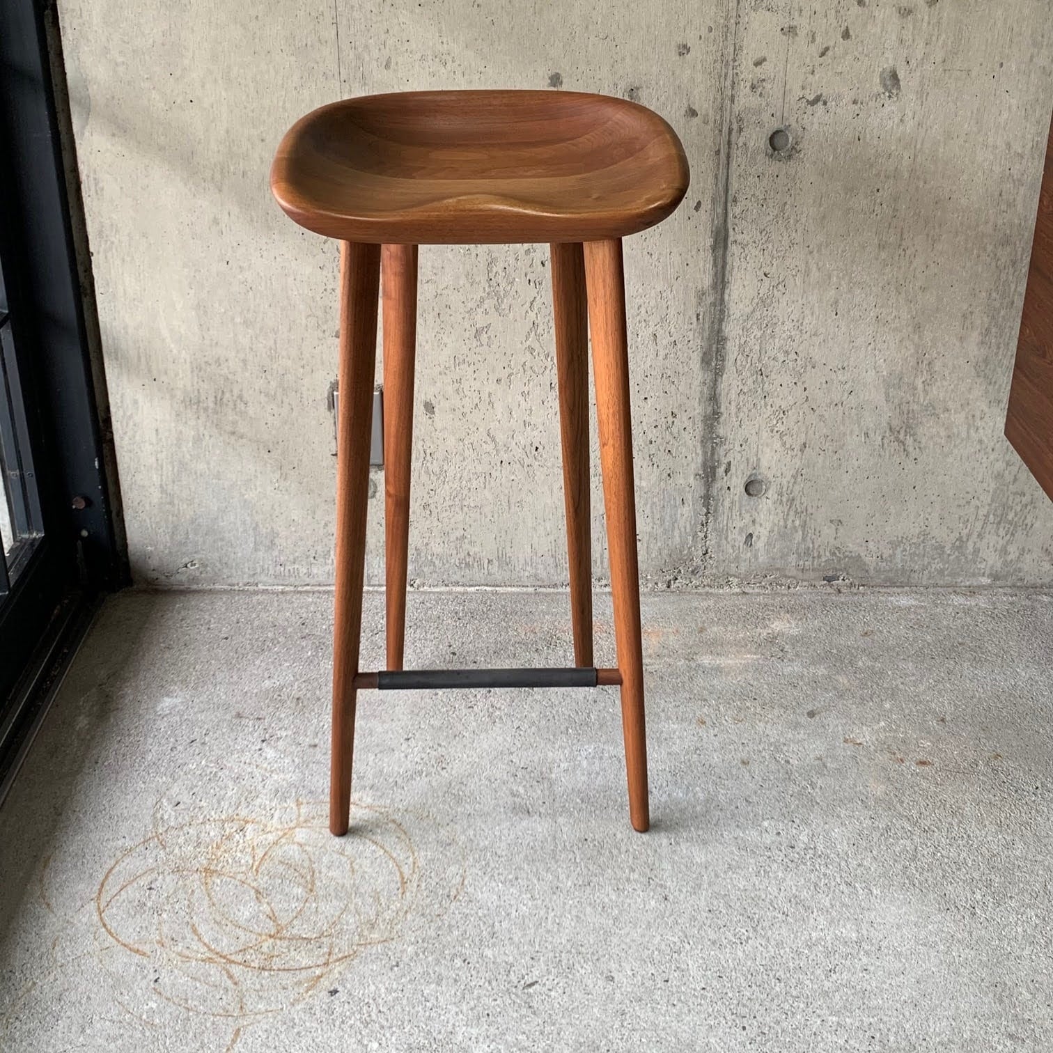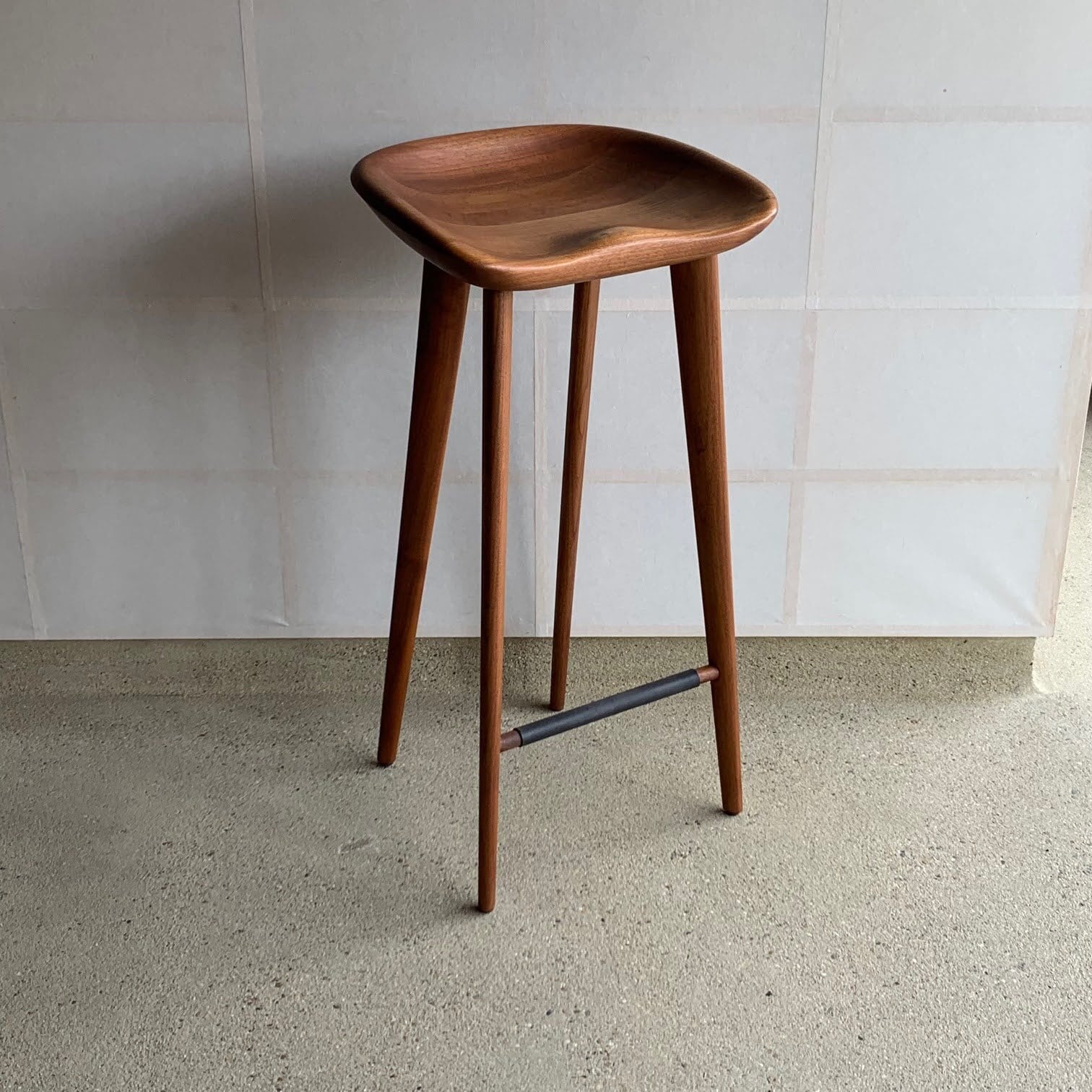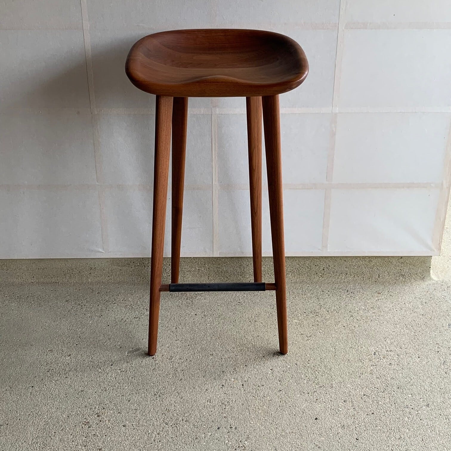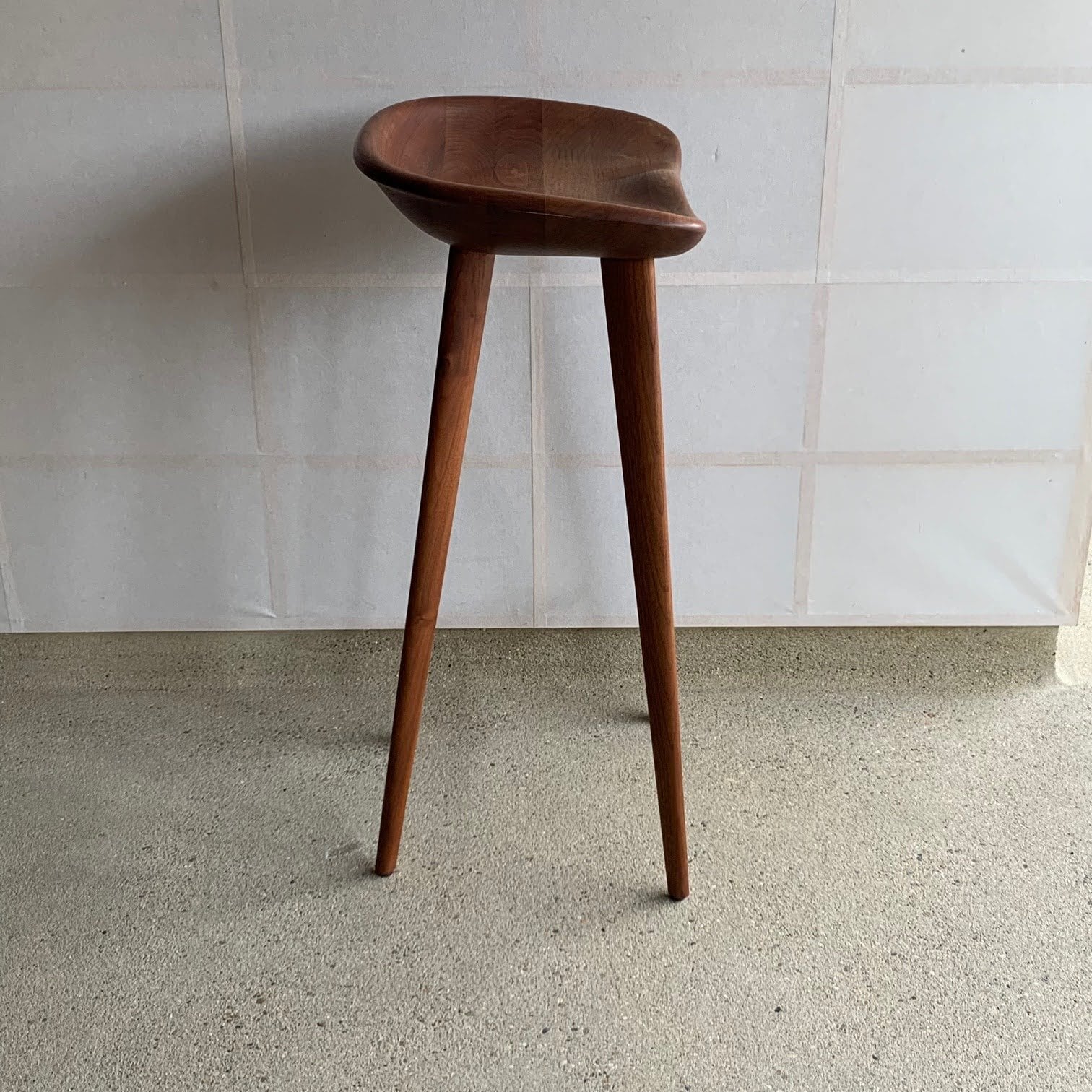 なだらかに削り出されたシートが身体をやさしく受け止める、洗練されたカウンタースツールです。