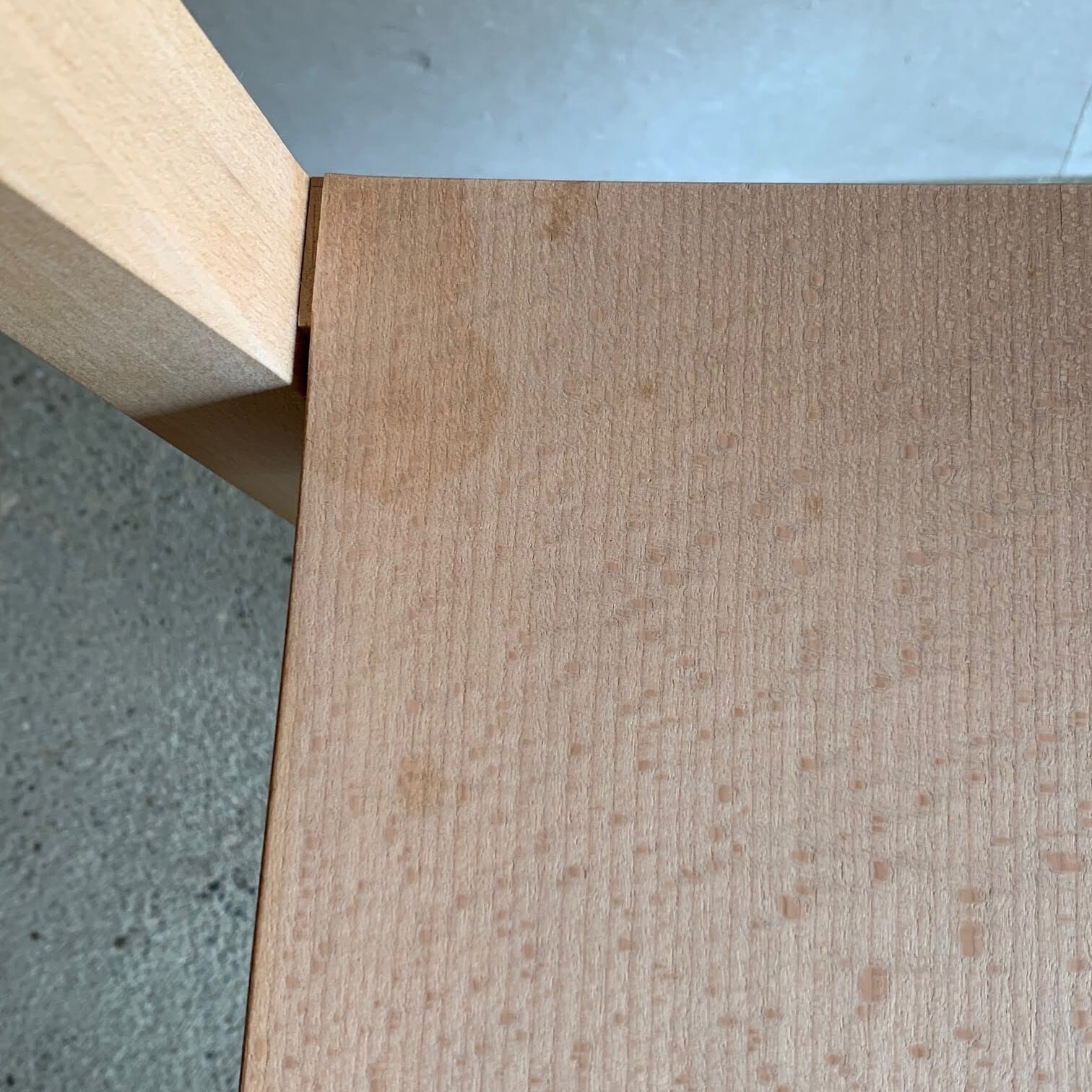 製作を担った ソーレン・リスヴァン (Søren Risvang) の工房仕事は、角の面取りや接合部の精度にまで美意識が行き届き、触れたときの滑らかさにその質の高さが現れます。明るい無垢材の木目は光をやわらかく受け止め、空間に穏やかな温度をもたらします。