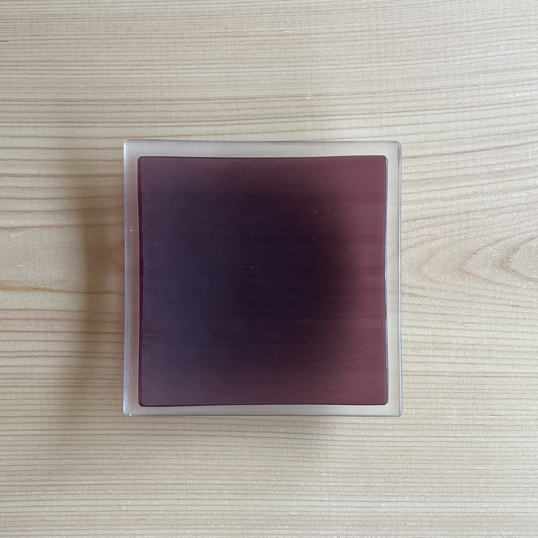 イタリアの工房で一枚ずつ手作りされたガラスプレート。PIATTI SOVRAPPOSTIは「重ねたお皿」という意味で、クリアなガラスの上に、表面を彫刻刀で削ったような模様が施されたアメジスト色のガラスが重なったプレートです。